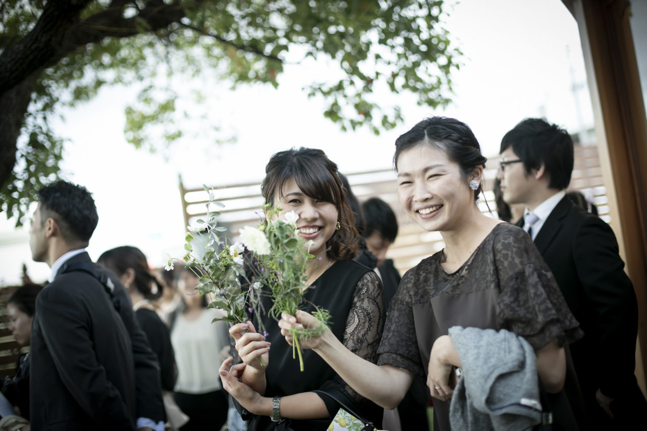 先日の結婚式では、ゲストがそれぞれ持つ花を集めてブーケとし