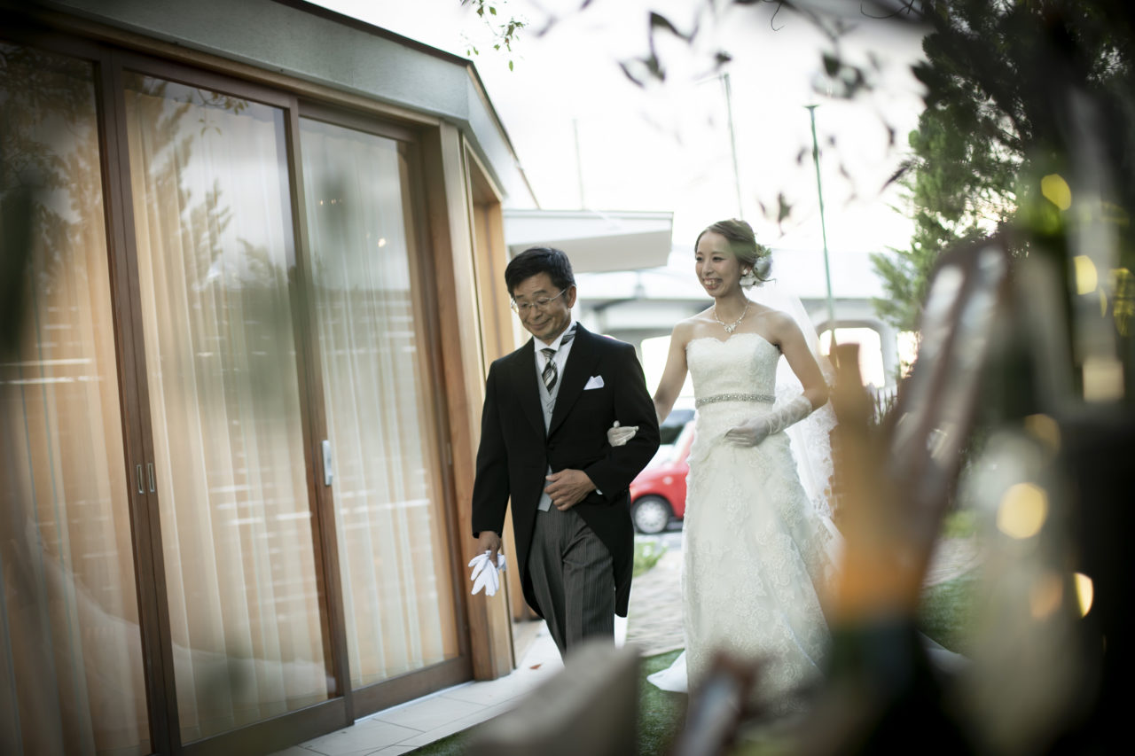 新婦様がお父様と入場すると新郎様と手を取りブーケ・ブートニアの儀式を開始するスタイルです。