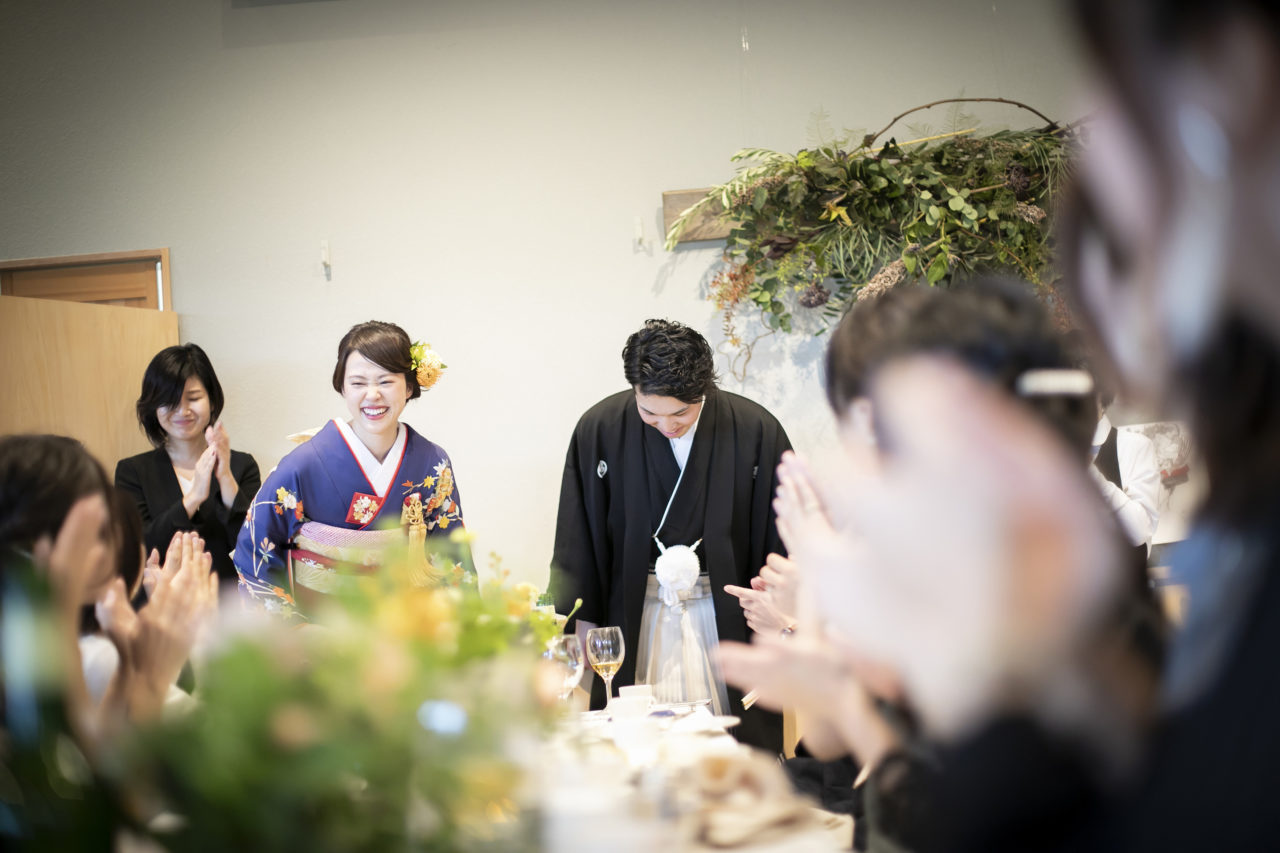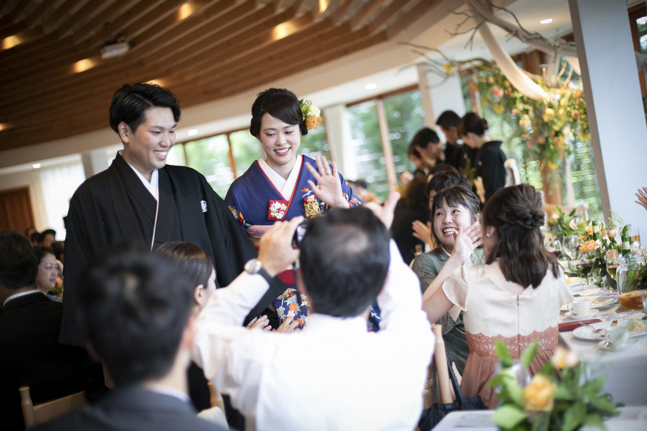お二人はパーティー途中で、紋付袴と引き振袖にお色直し!