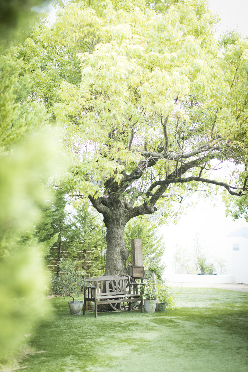ポンヌフの緑あふれるガーデンを背景にオープンスペースで行う厳かな結婚式。