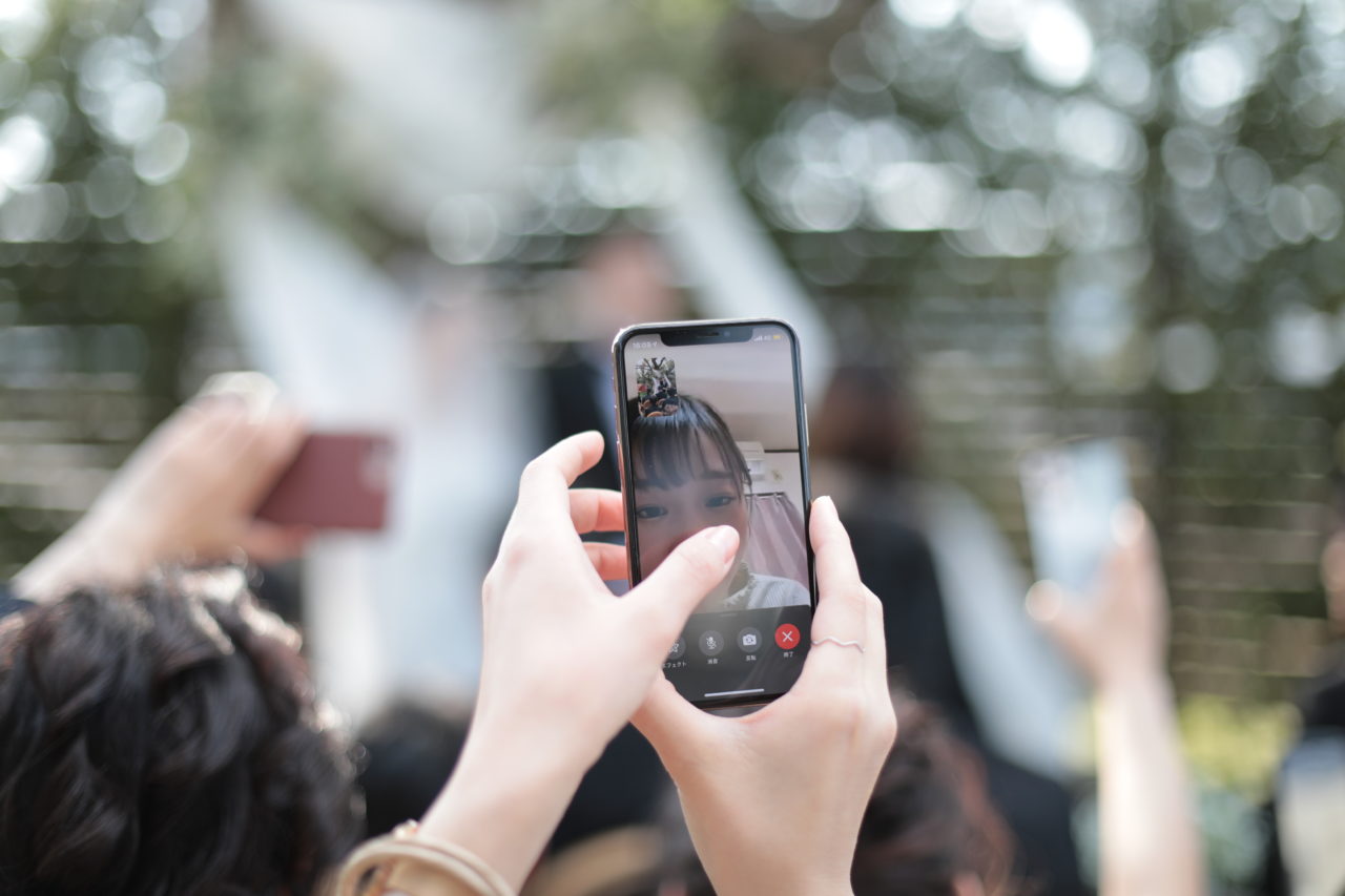 挙式中は友人たちが携帯電話を使って当日参加できなかったお友達をリモート参加させてくれました。
