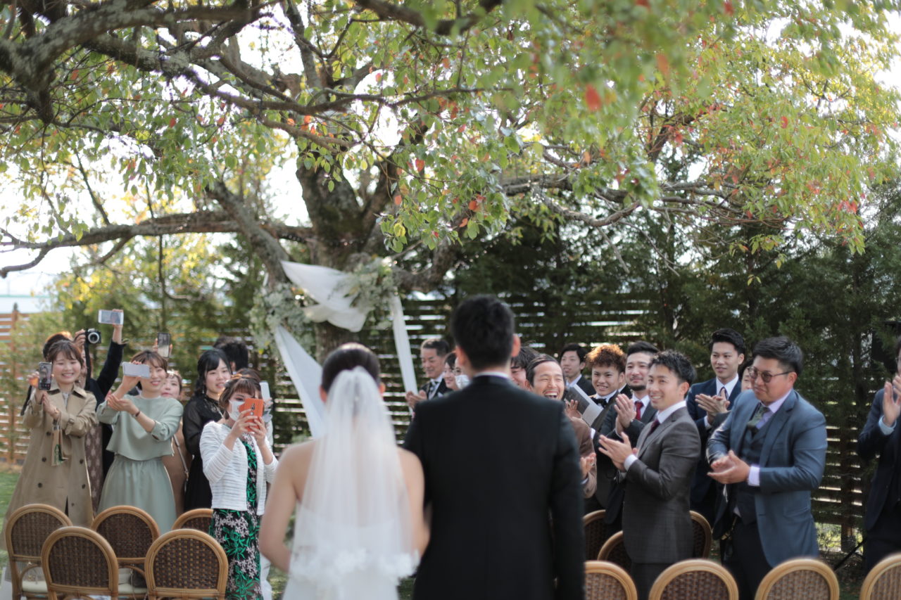 退場シーンは心から嬉しそうなお二人の笑顔が印象的です。