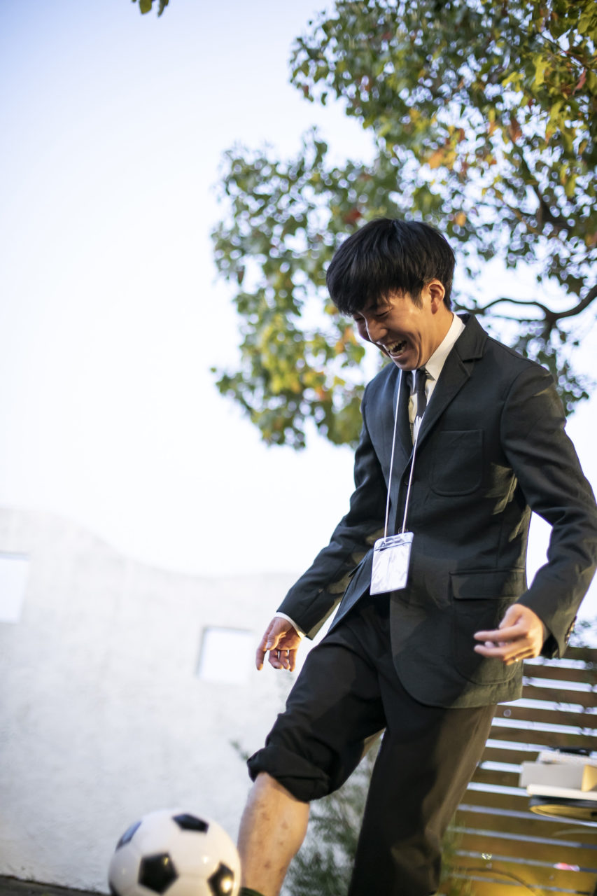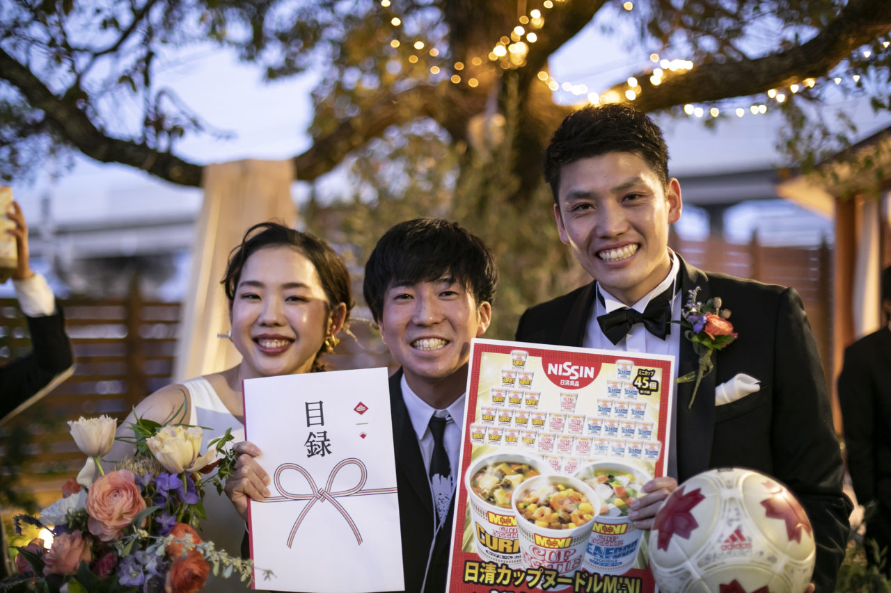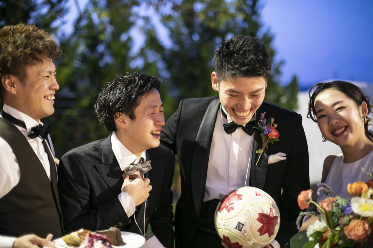 新郎様を含む10名のサッカー仲間の皆様がリフティング対決!
